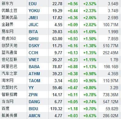 私有化要约推动艺龙股价大涨20% 携程跟着沾光,美股周二延续上一个交易日跌势中国概念股受国内股市大涨影响,逆市普涨。