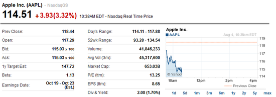 周一,苹果股价收报118.19美元,下挫2.5%,跌至今年1月以来低位。苹果股价自2013年9月以来首次跌破200日移动均线,200日均线往往被认为是支撑股价的技术指标。苹果市值年初超过7000亿美元时,库克曾认为中国市场功不可没。但二季度在中国销量不及预期,也拖累了苹果股价。