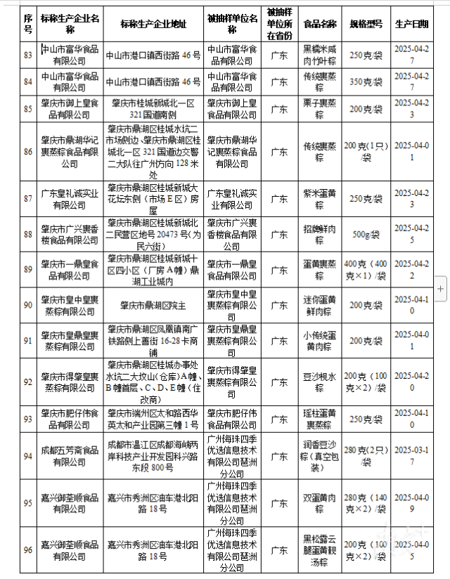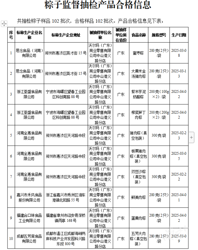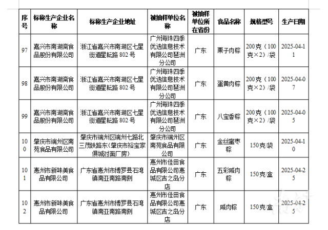 广东省市场监督管理局获悉,端午节临近,为切实保障广大消费者节日期间的食品安全,广东省市场监督管理局组织开展了粽子专项监督抽检工作。本次专项抽检共抽检粽子102批次,全部合格。